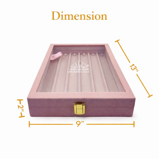 Pink Suede Fabric Chain Jewellery Display Stock Box – Pack of 2 | Glass Top Chain Storage Box by SCJ