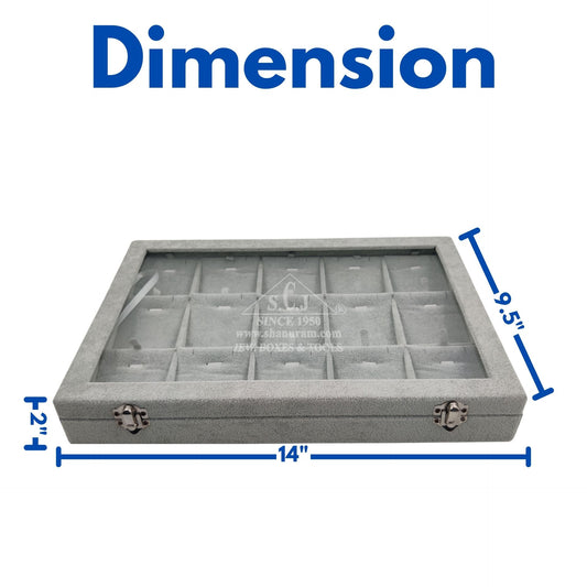 15-Grid Earring And Pendant Jewellery Display Stock Box | Grey Suede Pendant Stock Display Box