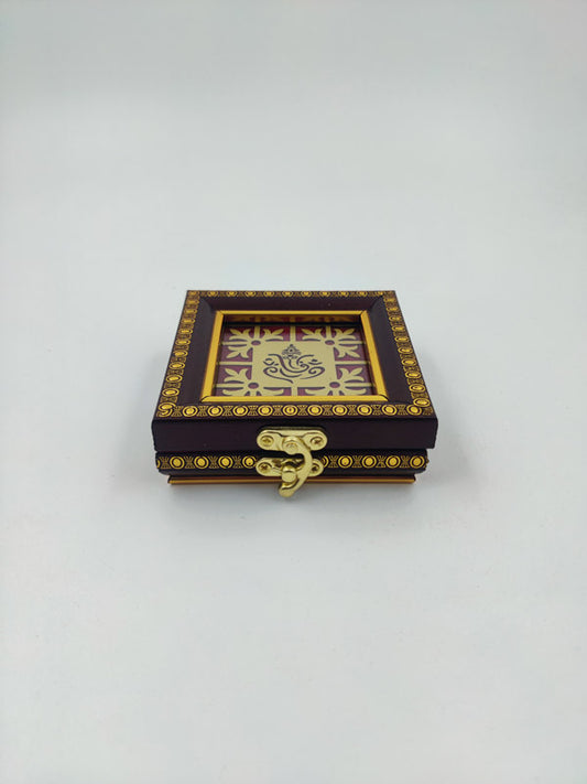 10g Red Wooden 7-Coins Square Box | 10g Silver/Gold 7-Sikka Square Box Holder | 10g 7-Ginni Square Box