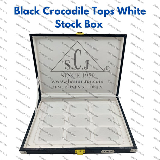 Pack of 2 Black Crocodile Bali White Stock Box | Imported PU Leather Jewellery Stock Display Box | 11 x 8 x 1.5 Inch