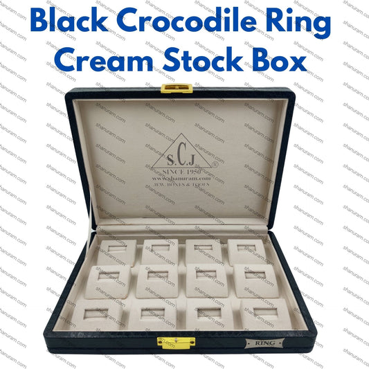 Pack of 2 Black Crocodile Ring Cream Stock Box | Premium Ring Storage & Display Box