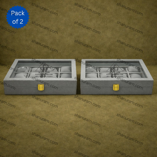 Pack of 2 – 12-Grid Bracelet Display Boxes | Grey Suede Jewellery Organizer with Cushions & Transparent Lid | Premium Stock Box for Retail & Personal Use