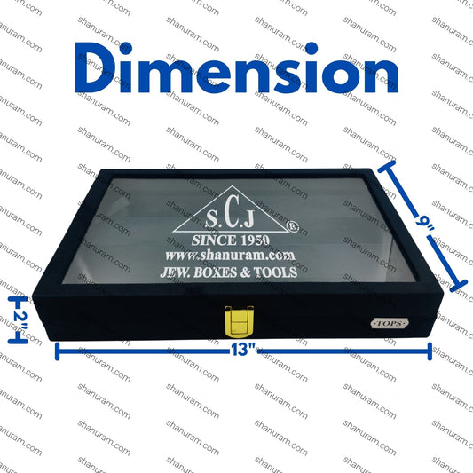 Pack of 2 Black Suede Fabric Chain Jewellery Display Stock Box with Glass Lid | Premium Chain Storage & Retail Display Box by SCJ