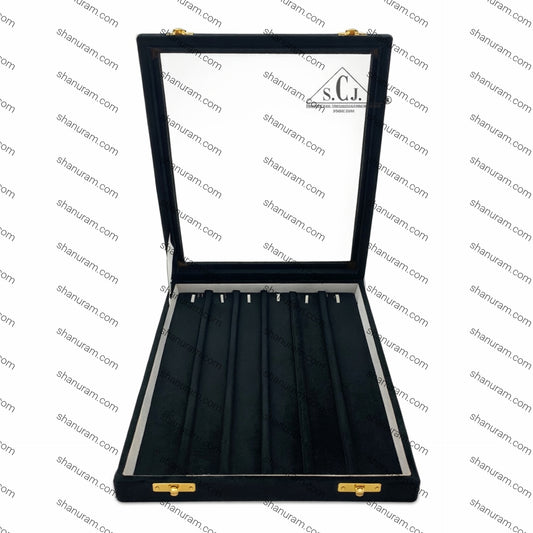 Black Suede Pendant Stock Box with 4 Shelves & 6 Hooks Each – Pack of 2 | Glass Top Jewellery Display Box by SCJ