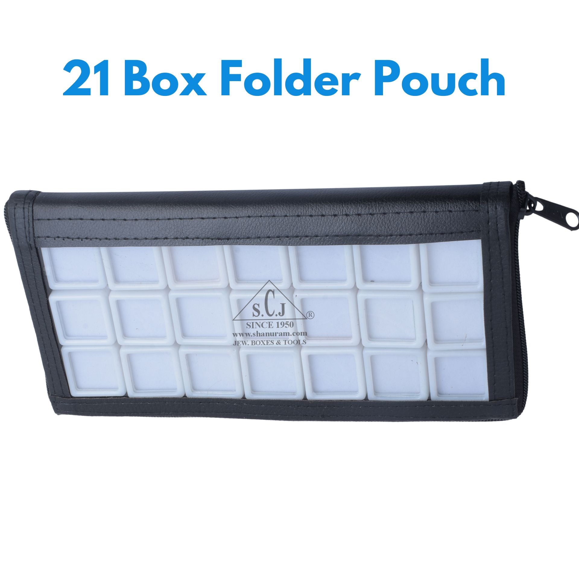 Jewelry bag display carry bag for 21 pcs of glass top 3x3 cm size box with cover zipper | 21 Box Folder Pouch