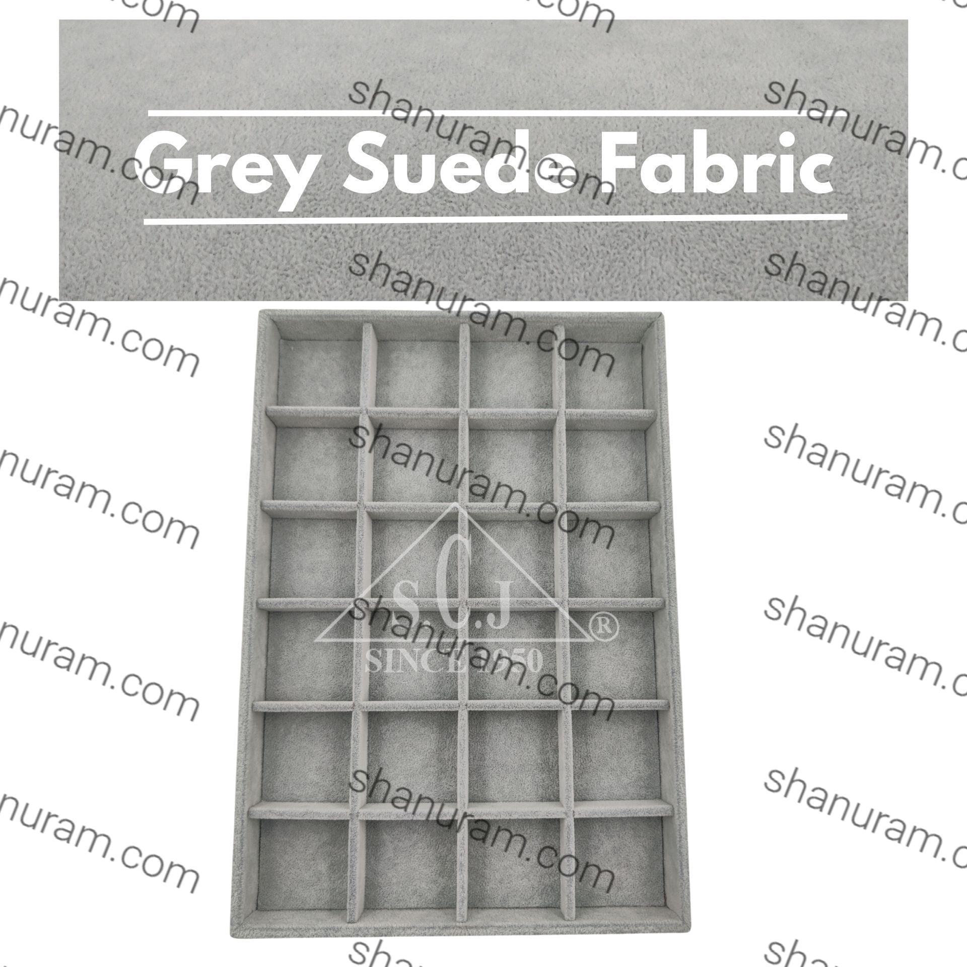 This 24-grid jewelry stock display tray is perfect for showcasing a variety of jewelry pieces. Crafted from durable wood and wrapped in soft suede, it offers both style and protection. The tray includes a mirror display, allowing for easy selection and viewing of your collection. With 24 compartments, it provides ample space to organize and display your jewelry, making it ideal for both personal use and retail settings. | Size : 14" x 9.5" x 1.5" | Material : Durable Wood | Shape : Rectangle | Color: Grey