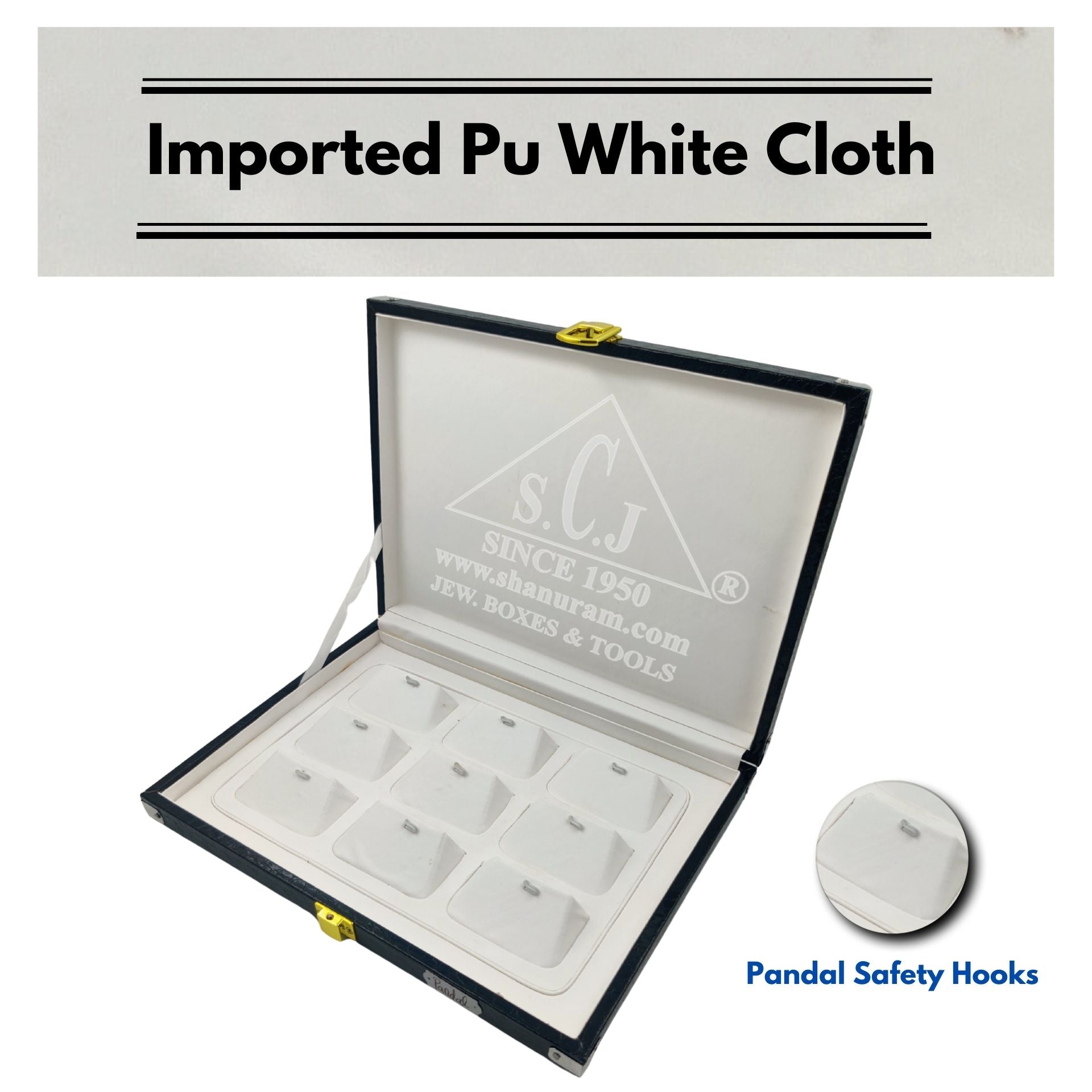 This pendant stock box features a sleek black crocodile texture exterior, adding a sophisticated and luxurious touch. The interior is lined with imported white PU cloth, offering a smooth and elegant backdrop for your pendants. Perfect for both storage and display, this box combines stylish design with practical functionality. | Size : 11" x 8" x 1.5" | Inner Material : Imported Pu White Cloth | Outer Material : Black Crocodile Texture