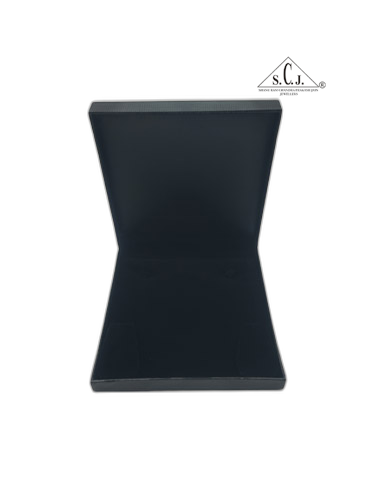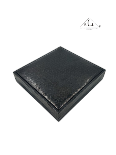 This large necklace set box boasts a refined black crocodile texture on the exterior, exuding elegance and luxury. Inside, the box is lined with plush black velvet, offering a soft and secure space to showcase a complete necklace set. The sophisticated combination of the textured outer surface and the smooth velvet interior makes this box a stylish and elegant choice for presenting or storing a cherished necklace set. | Size : 8" x 8" x 1.75" | Color : Black | Outer Material : Black Crocodile Texture | Inner Material : Black Velvet