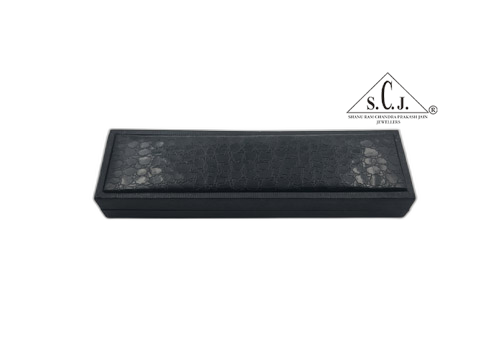 This small chain box features a stylish black crocodile texture on the exterior, giving it a refined and luxurious look. The interior is lined with soft black velvet, providing a secure and elegant resting place for the chain. The contrast between the textured outer surface and the plush velvet interior makes this box a sophisticated choice for storing or presenting a cherished chain. | Size : 9" x 2.5" x 1.25" | Color : Black | Outer Material : Black Crocodile Texture | Inner Material : Black Velvet