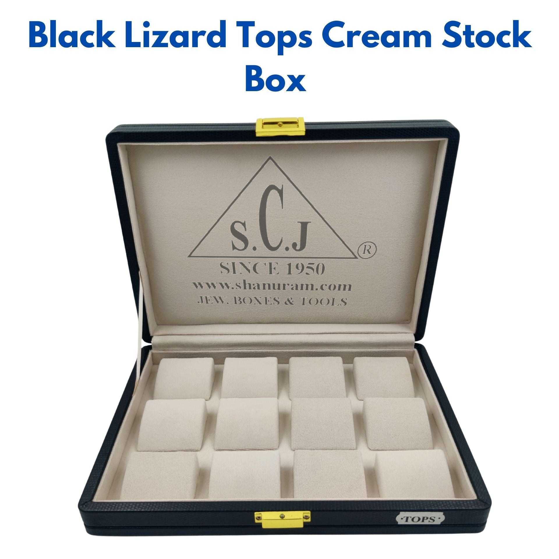 Black Lizard Tops Cream Stock Box | Tops \ Earrings Stock Box | Jewelry Storage Box