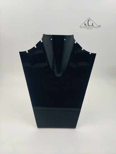 This Chain Necklace Jewelry Display Stand in black is a sleek and practical organizer for showcasing necklaces and chains. Measuring 9" inches tall, it provides ample space to neatly display your jewellery while preventing tangling. Its modern black finish adds a touch of elegance, making it ideal for both personal use and retail display.