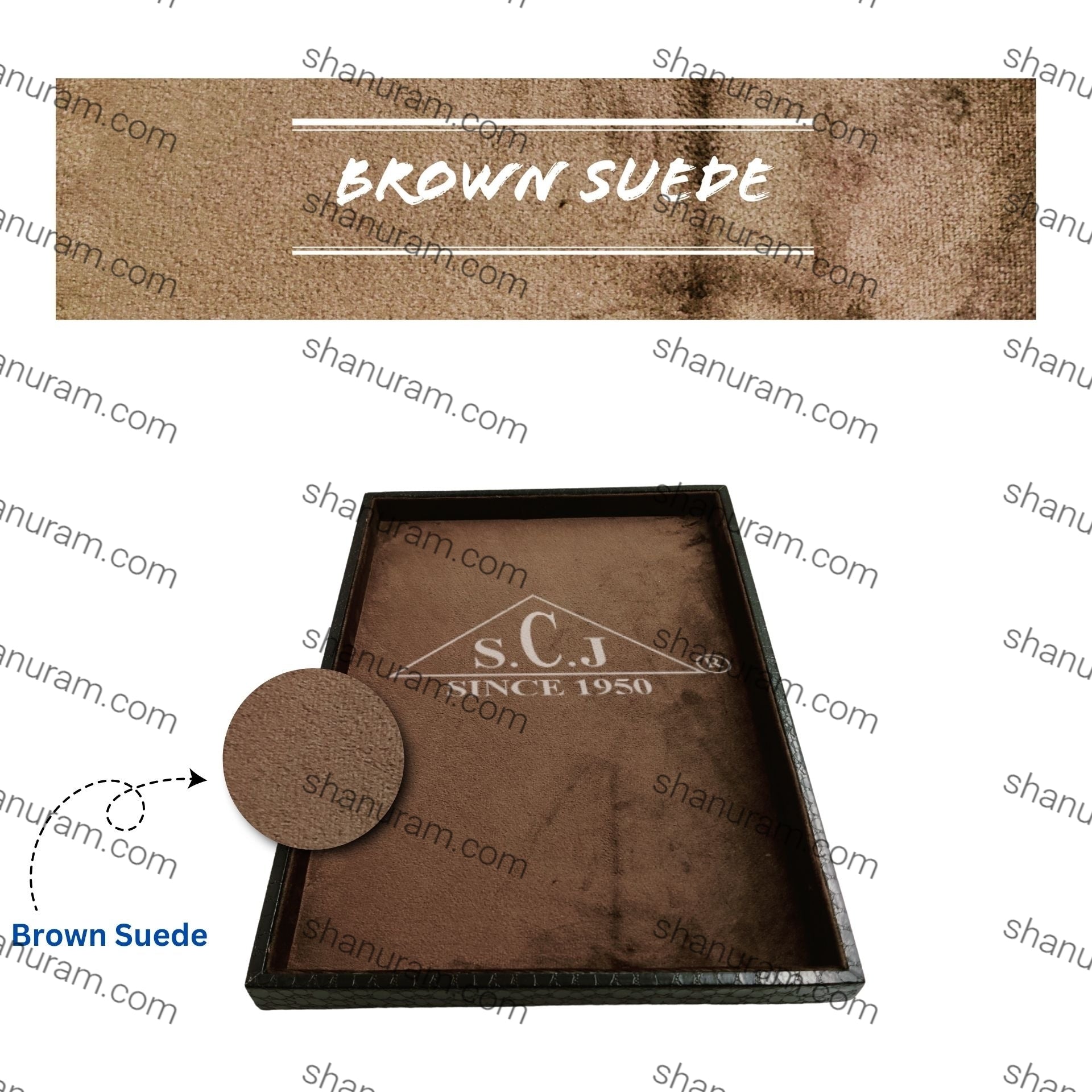 Crocodile Brown Suede Fabric Jewellery Display Tray