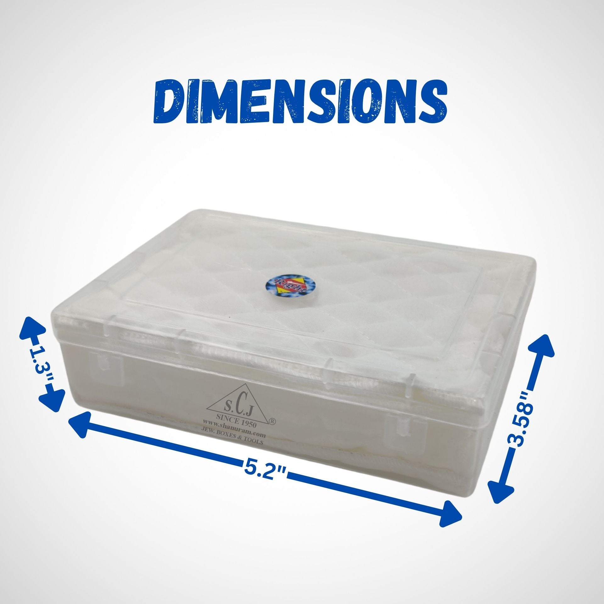 The Klick 33 Box is designed for efficient storage and easy travel. With dimensions of 5.2" x 3.58" x 1.3", this rectangular container is well-suited for organizing everyday items such as bangles and small accessories. Constructed from durable, transparent plastic, it provides clear visibility and reliable protection. Made in India, the Klick 33 Box combines practical functionality with a sleek design, making it an excellent choice for both home organization and on-the-go use.