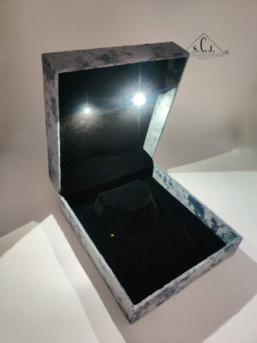 The Marble Sea Choker LED Box is a luxurious packaging solution crafted to showcase chokers with elegance. Equipped with an integrated LED light, it enhances the brilliance of the jewelry, offering a premium and stylish display.