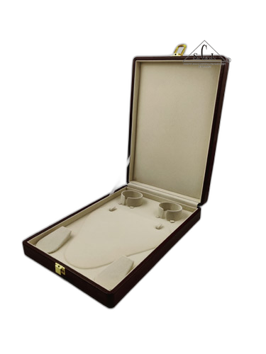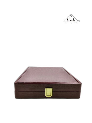 This bangle-necklace set box is adorned with a rich maroon crocodile texture on the exterior, offering a luxurious and stylish appearance. The interior is lined with pristine white velvet, creating a striking contrast that enhances the presentation of both bangles and necklaces. The combination of the deep maroon exterior and the bright white interior makes this box a sophisticated choice for showcasing or storing a complete bangle and necklace set. | Size : 9" x 13" x 2.25" | Color : Maroon | Outer Material : Maroon Crocodile Texture | Inner Material : White Velvet