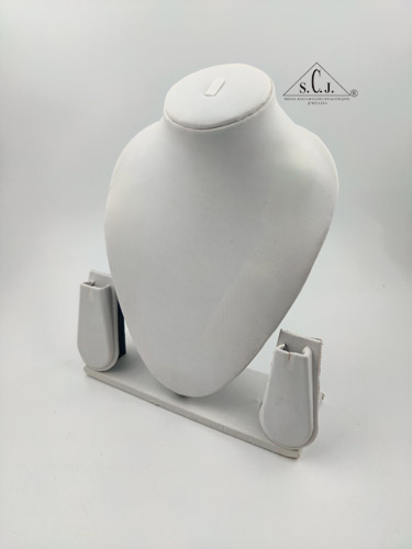 The Necklace and Earring Set Allure Leatherette Display Stand in White is a stylish and practical organizer for displaying matching Jewellery sets. Made from premium Allure Leatherette and standing 10 inches tall, it provides an elegant platform to showcase both necklaces and earrings, ideal for personal use or retail displays.