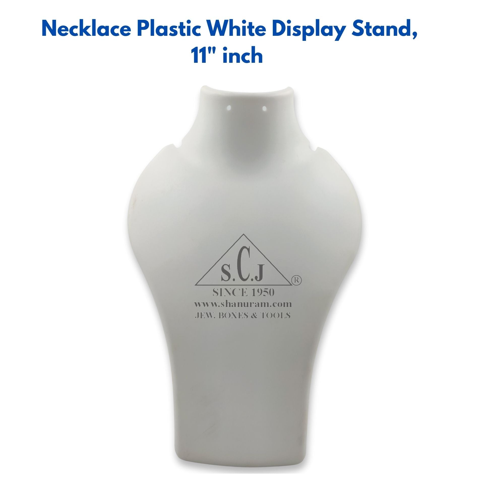 This Necklace Plastic Display Stand in white is a durable and stylish organizer designed to showcase necklaces beautifully. Measuring 11 inches in height, it offers a clean and elegant display, ideal for preventing tangles and keeping your jewellery organized. Perfect for both personal use and retail settings.