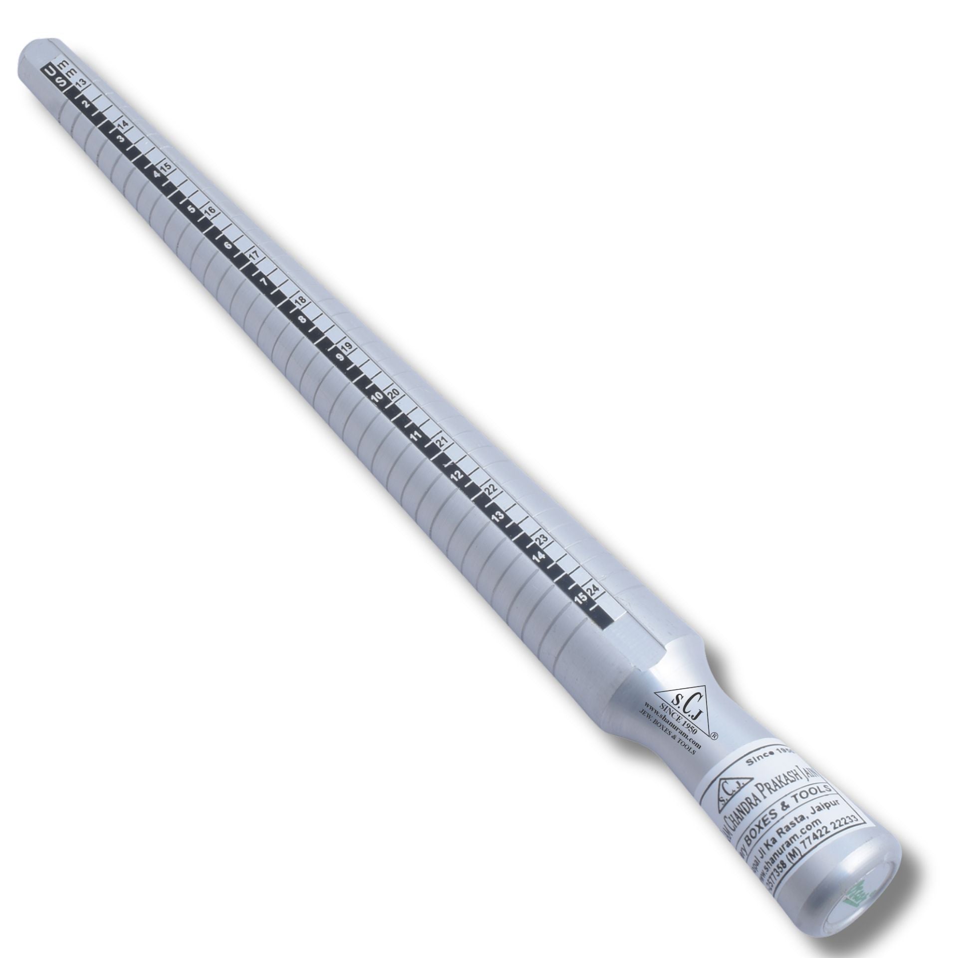 Aluminum Ring Stick: Marked with four universal size indicators – US, European, and millimeter measurements