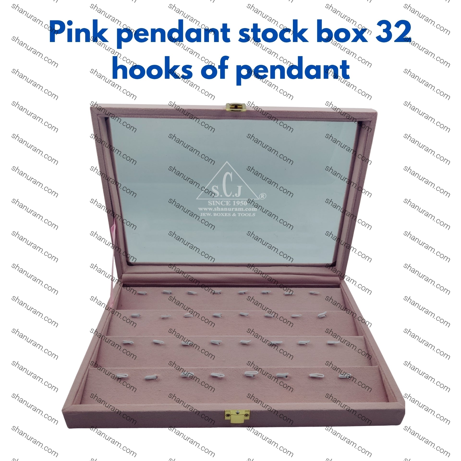Pink Suede Fabric Pendant Jewellery Display Stock Box (32 Hooks) – Pack of 2 | Glass Top by SCJ