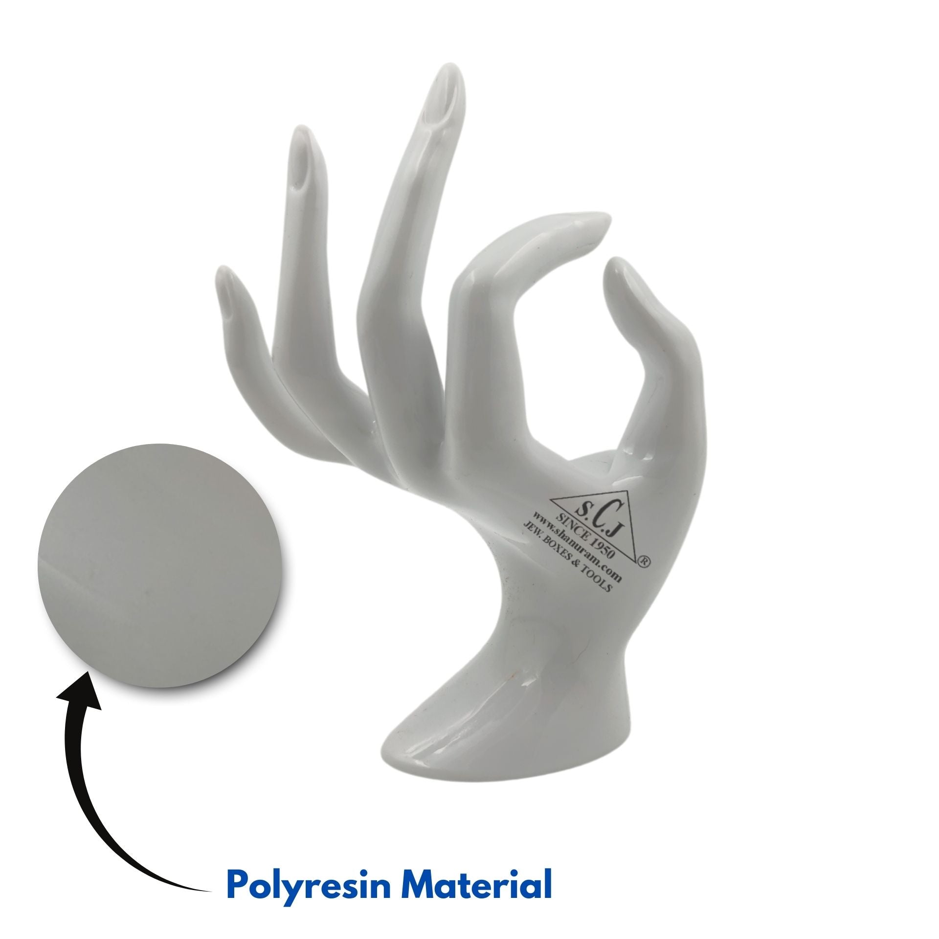 Premium Polyresin Hand Jewelry Display Stand Support Holder Tower Organizer for Bracelet Necklace Watch Ring, White