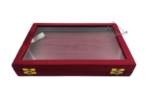 This chain stock box is elegantly crafted with red velvet fabric on both the exterior and interior, offering a plush and luxurious look. The glass display on top provides a clear view of your chains while adding a touch of sophistication. Ideal for both storage and presentation, this box combines opulent style with practical functionality. | Size : 12" x 8" x 2" | Inner Material : Red Velvet Fabric | Outer Material : Red Velvet Fabric