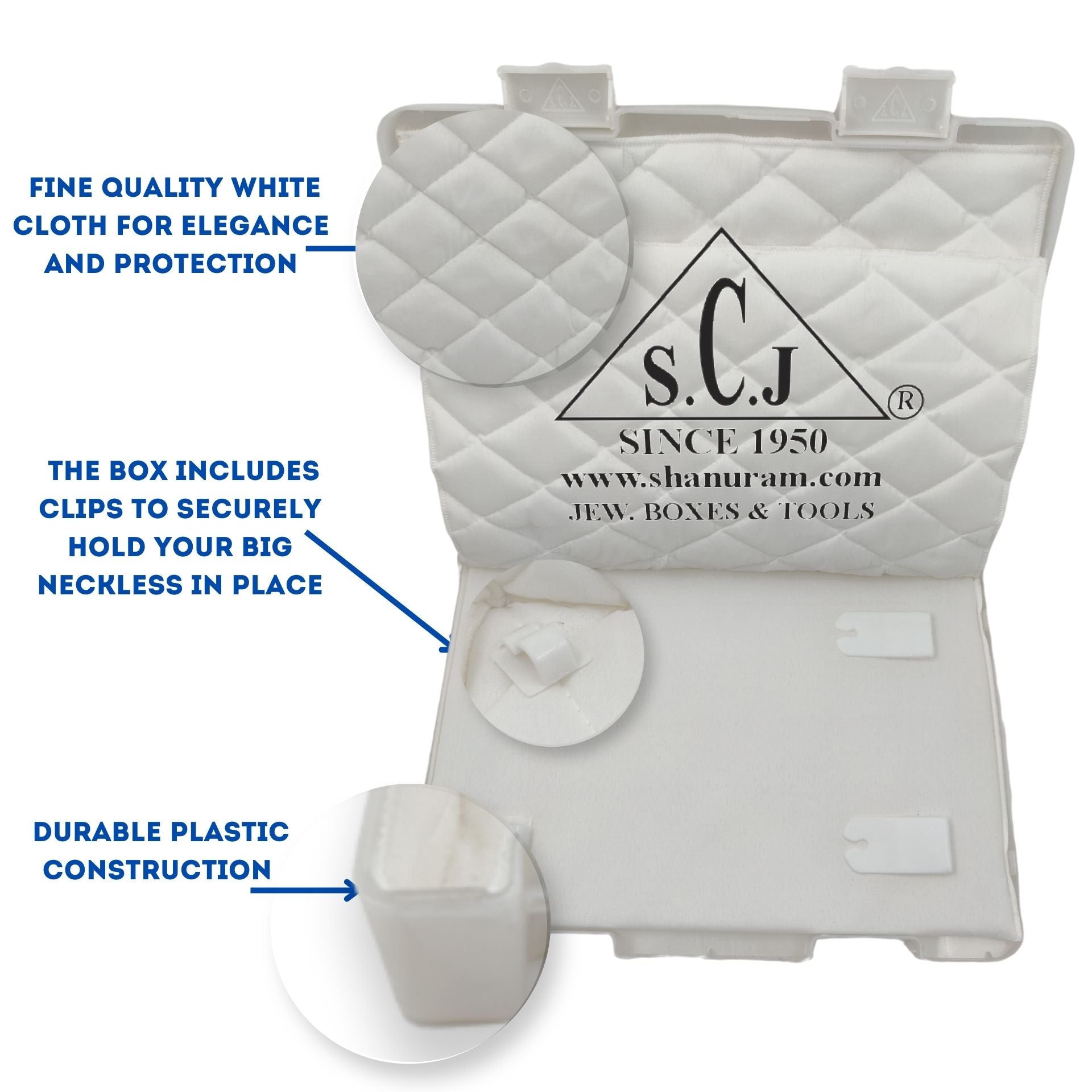 SCJ Big Necklace Box – Durable Off-White Plastic Jewelry Storage with White Cloth Lining (Pack of 10)