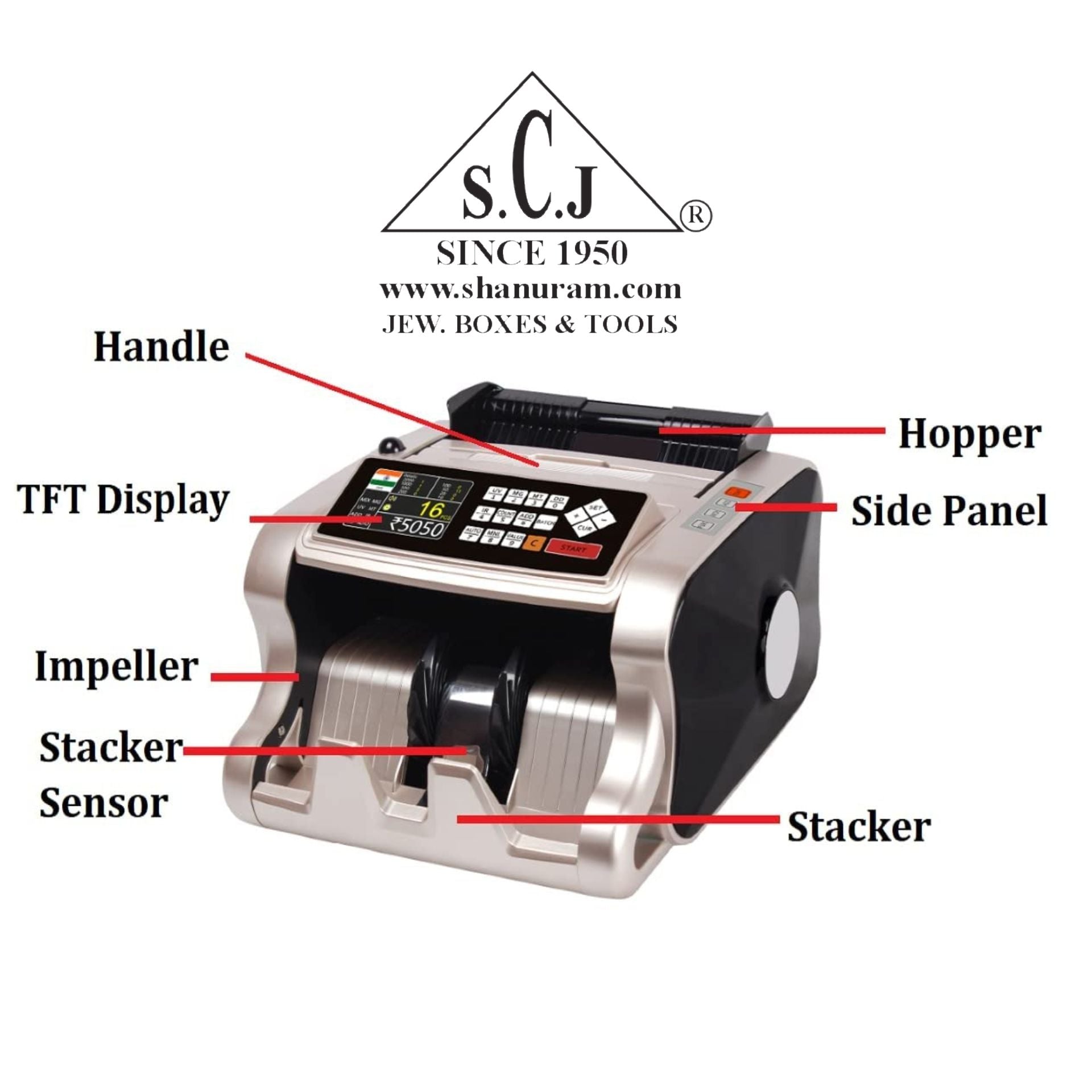 SCJ Heavy Duty Indian Currency Value Counter Machine with Fake Note Detection – Supports Mixed Denominations (₹10 to ₹2000) – Loose Cash Counting Machine