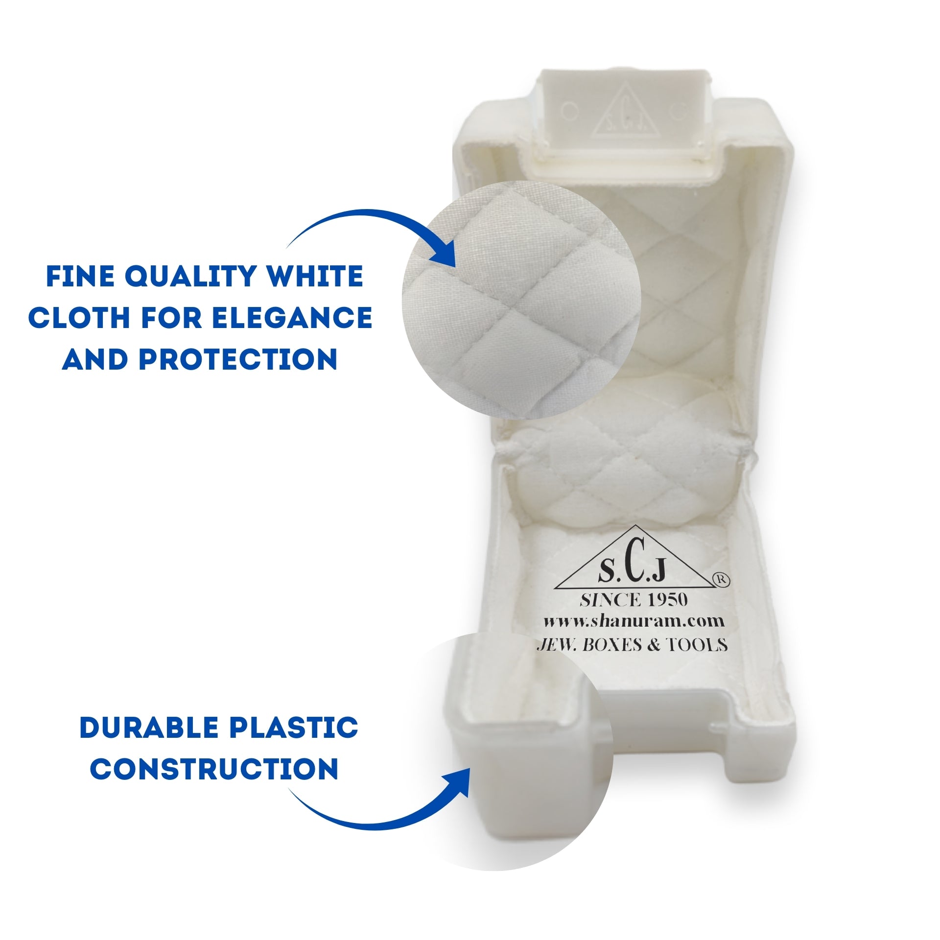 SCJ Ring Box – Pack of 10 Off White Plastic Jewellery Boxes with White Cloth Lining