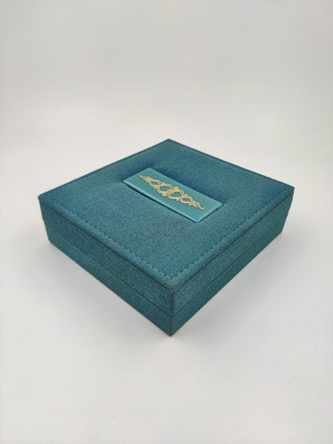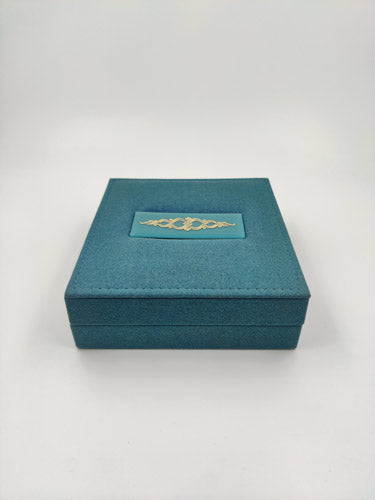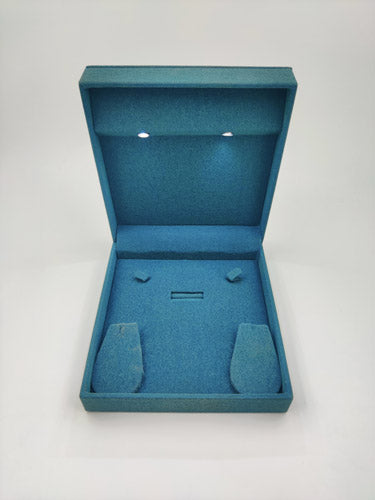 This elegant small necklace set box, crafted from high-quality micro fiber, is perfect for Indian jewelry collections. The dark green exterior adds a touch of sophistication, while the built-in LED light inside highlights the necklace set, enhancing its beauty and brilliance. Ideal for presenting your jewelry in style.