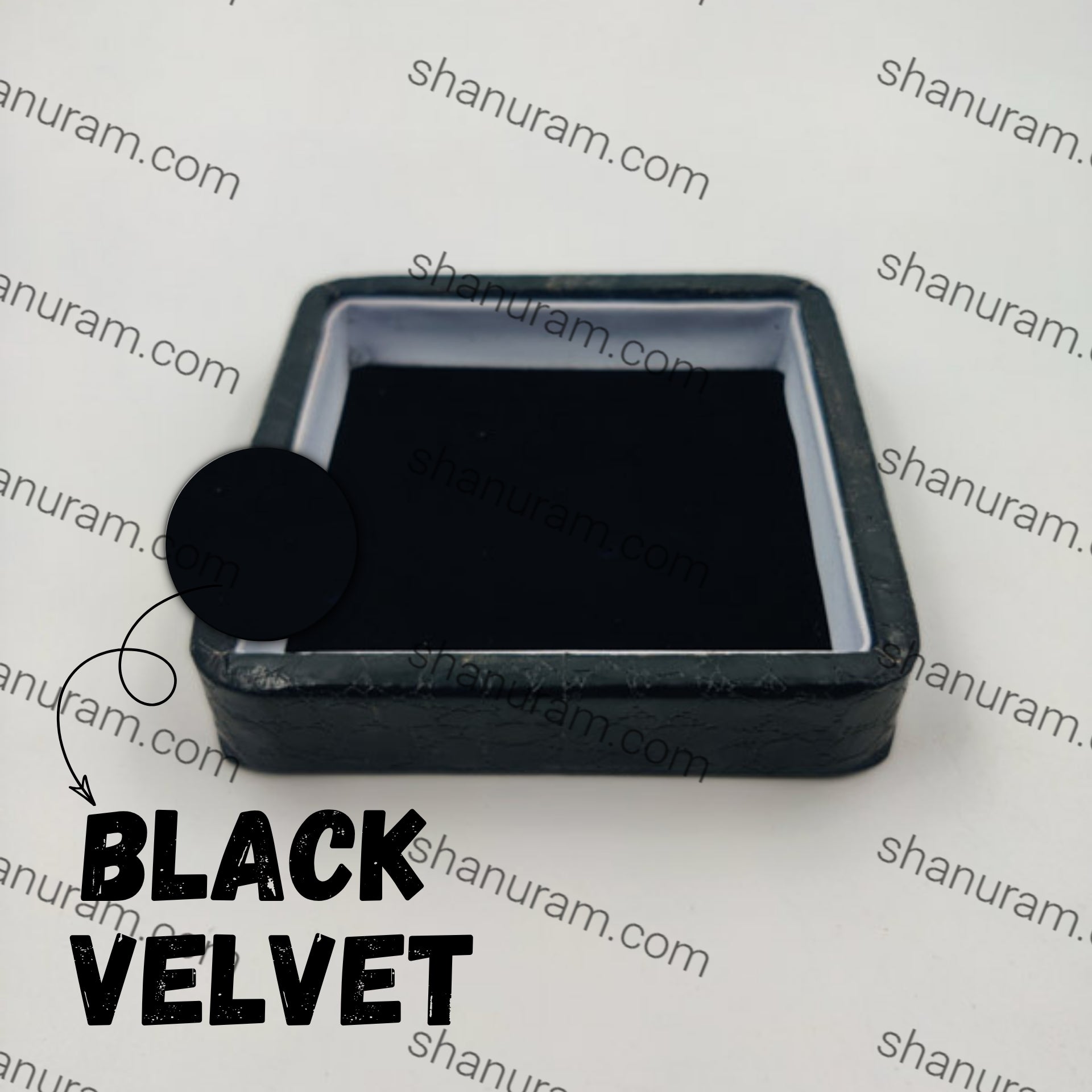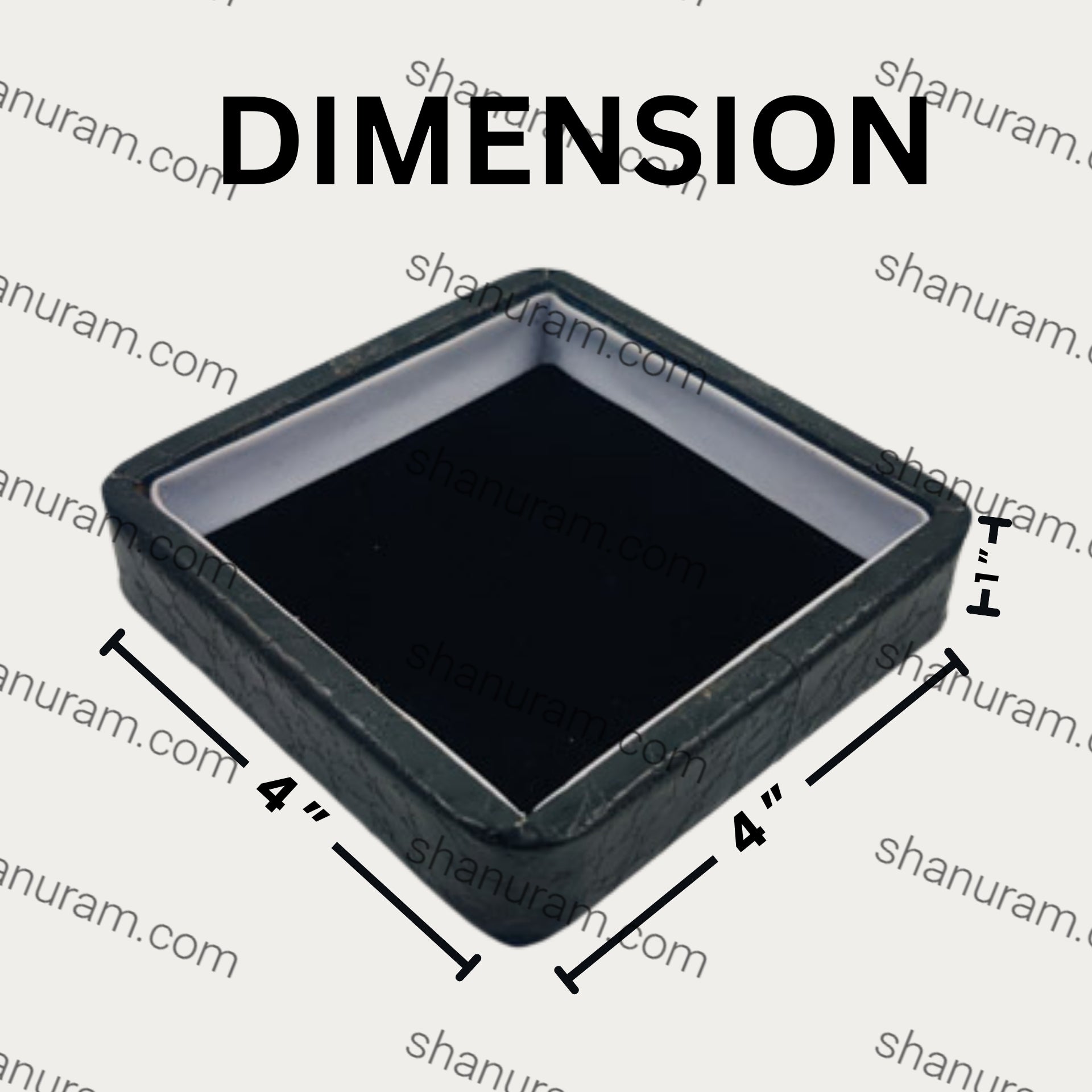 A compact tray featuring a sleek black crocodile texture on the exterior, giving it a luxurious and sophisticated look. The interior is lined with soft black velvet, providing a smooth and protective surface for delicate items. This stylish tray is perfect for organizing jewelry, watches, or other small accessories, adding a touch of elegance to any space. | Size : 4" x 4" x 1" | Material : Black Crocodile Texture